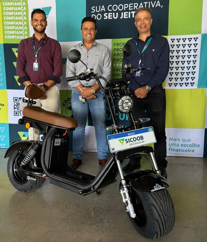 A ação contemplou cooperados que investiram a partir de R$ 10 mil na cooperativa, no período de 28 de agosto a 26 de novembro de 2025. “A cada R$ 10 mil investidos, o cooperado recebia um cupom, limitado a 100 cupons por participante”, explica o diretor de Relacionamento e Inovação. A entrega da scooter ocorreu na sede da cooperativa financeira, com a presença do proprietário da empresa, Geovani Alves da Costa, além de José Umberto Vaz de Siqueira, e do gerente de agência, Fábio de Aguiar.