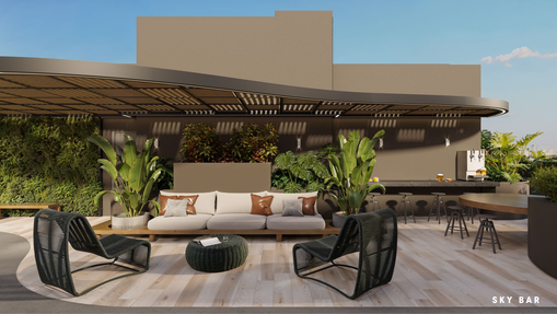 A obra (projeto de arquitetura e de interiores) leva a assinatura da Altces Arquitetura (da Arquiteta Iara Luiza Dawa), com a presença de dois rooftops com SkyView 360º (com sky bar & living e observatório) academia – assinada pela “Basic Full”, lobby com pé-direito triplo e a área de lazer com conceito home resort (quadra de beach tennis e street ball, piscinas adulto/infantil, com deck; adega, brinquedoteca, coworking, salão de festas/game/espaço gourmet, sauna à vapor, criomassagem, fitness outdoor, sala de reunião, salão de jogos, mini Market autônomo, pub/game, spa privativo), itens que reforçam o caráter inovador e competitivo do produto. Além de grandes painéis assinados pelo Diretor de Arte e Artista Visual, Daniel Uires.