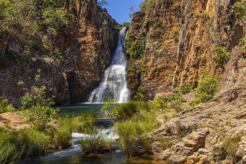 A Chapada dos Veadeiros abriga paisagens espetaculares, como a Chapada Alta, o Rio Preto e o Vale da Lua. Trekkers que se aventuram pelo parque nacional têm a chance de explorar vegetação típica do Cerrado e se refrescar nas cachoeiras. A Cachoeira dos Saltos, com quedas de até 120 m, é a mais conhecida.