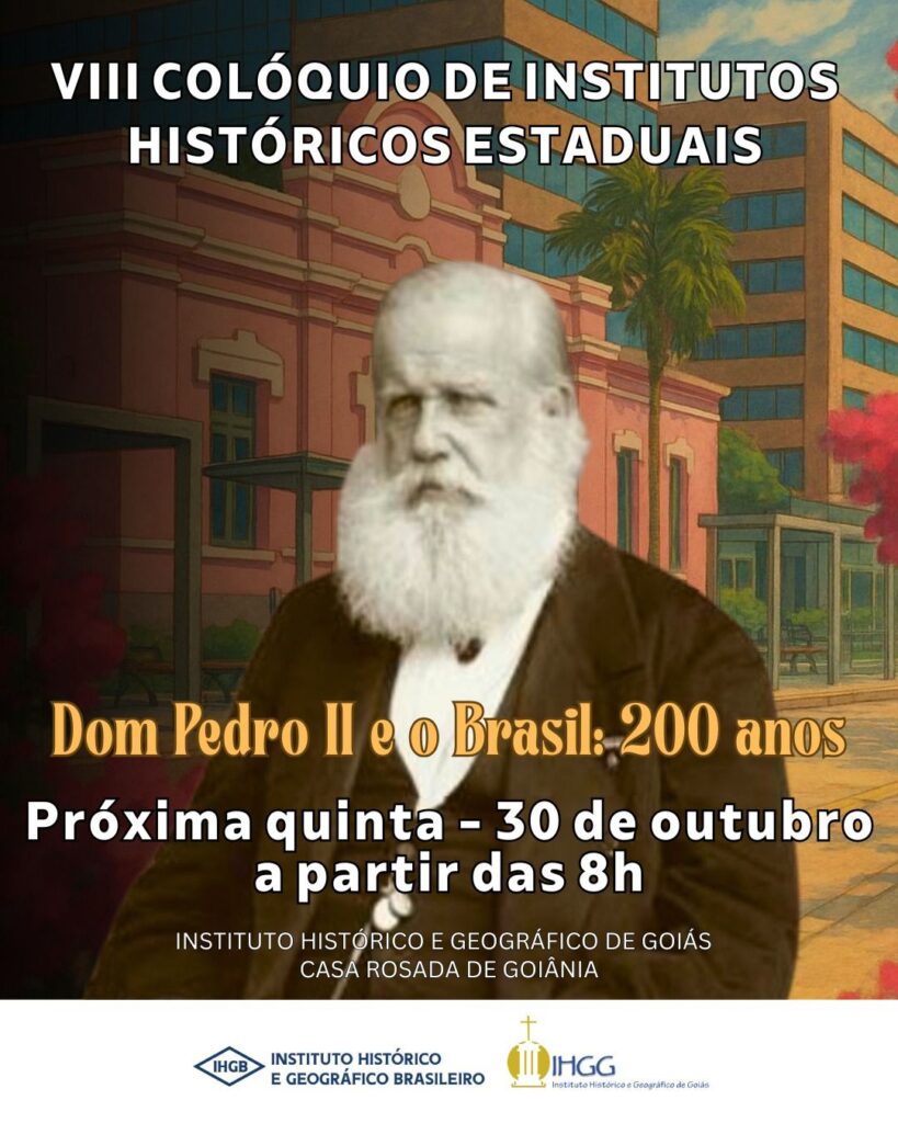 O Colóquio de Institutos Históricos Estaduais, criado há 11 anos pelo Instituto Histórico e Geográfico Brasileiro (IHGB) para valorizar a diversidade das experiências regionais do Sistema Nacional de Institutos Históricos na construção do Brasil, ocorre pela primeira vez fora da capital do Rio de Janeiro. A Casa Rosada de Goiânia, sede do Instituto Histórico e Geográfico de Goiás (IHGG) recebe, nos dias 30 e 31 de outubro, a oitava edição do encontro. O evento tem como tema “Dom Pedro II e o Brasil: 200 anos”.